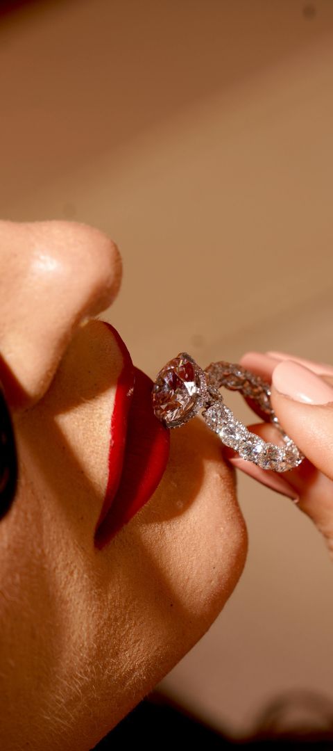 Cushion-Cut Split-Shank Pavé Diamond Ring