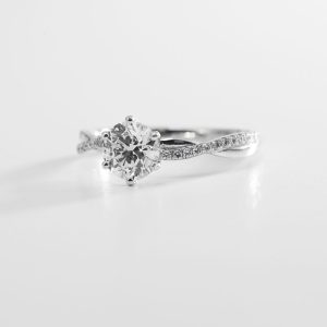 - Setting: Claw set with V-claw at the point; low, comfortable basket