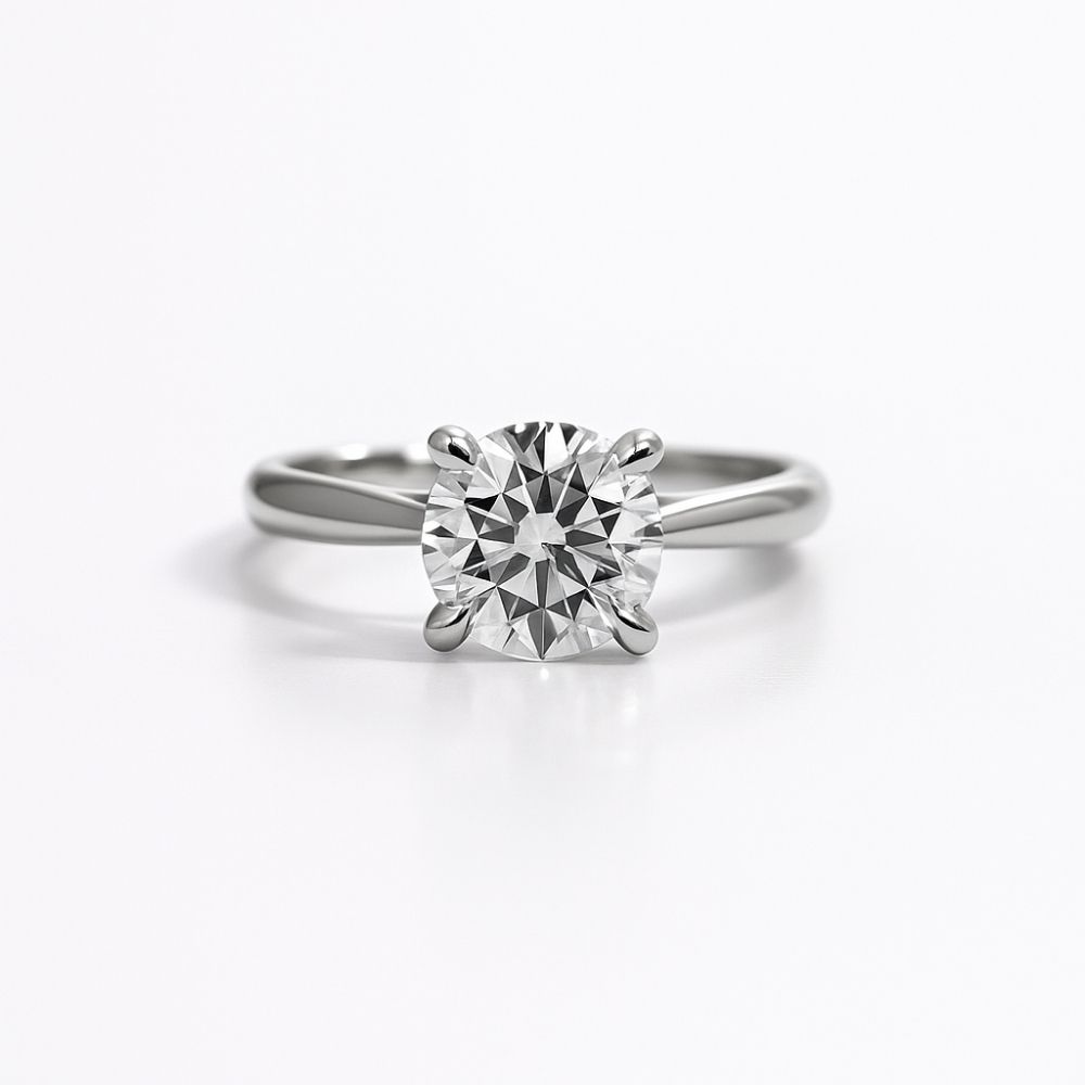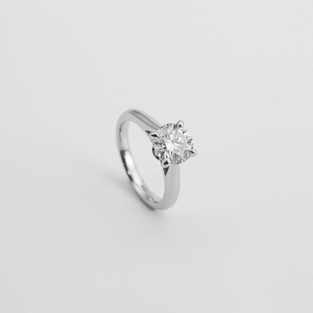 A round brilliant in a refined four-claw head with elegant cathedral shoulders.